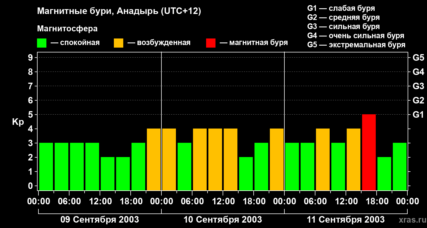 Магнитные бури в Анадыре — 11 сентября 2003 года