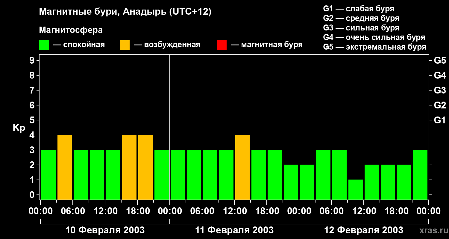 Магнитные бури в Анадыре — 12 февраля 2003 года