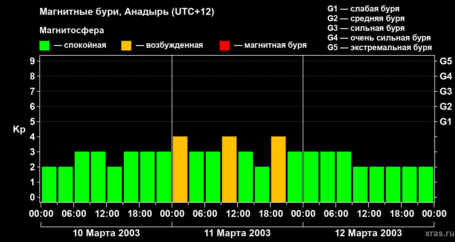Магнитные бури в Анадыре — 12 марта 2003 года