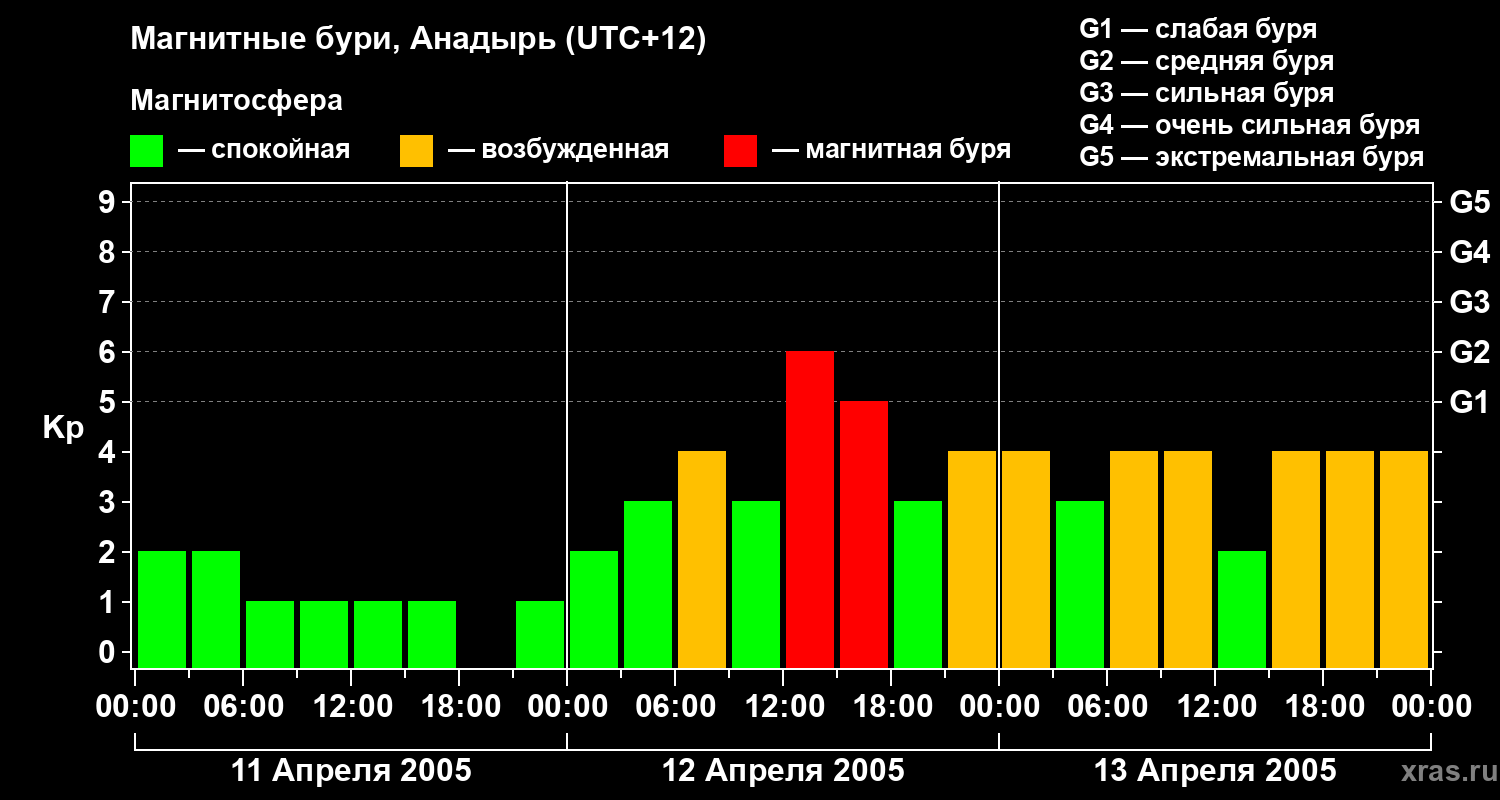 Магнитные бури в Анадыре — 13 апреля 2005 года