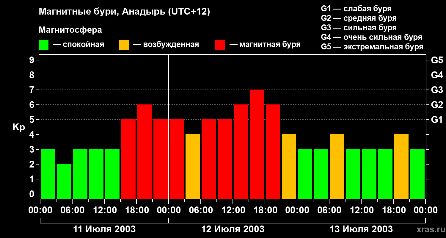 Магнитные бури в Анадыре — 13 июля 2003 года