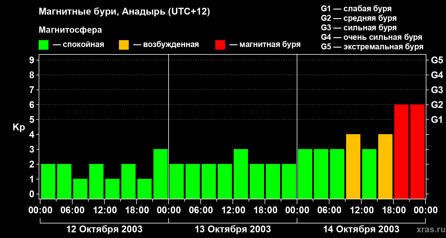 Магнитные бури в Анадыре — 14 октября 2003 года
