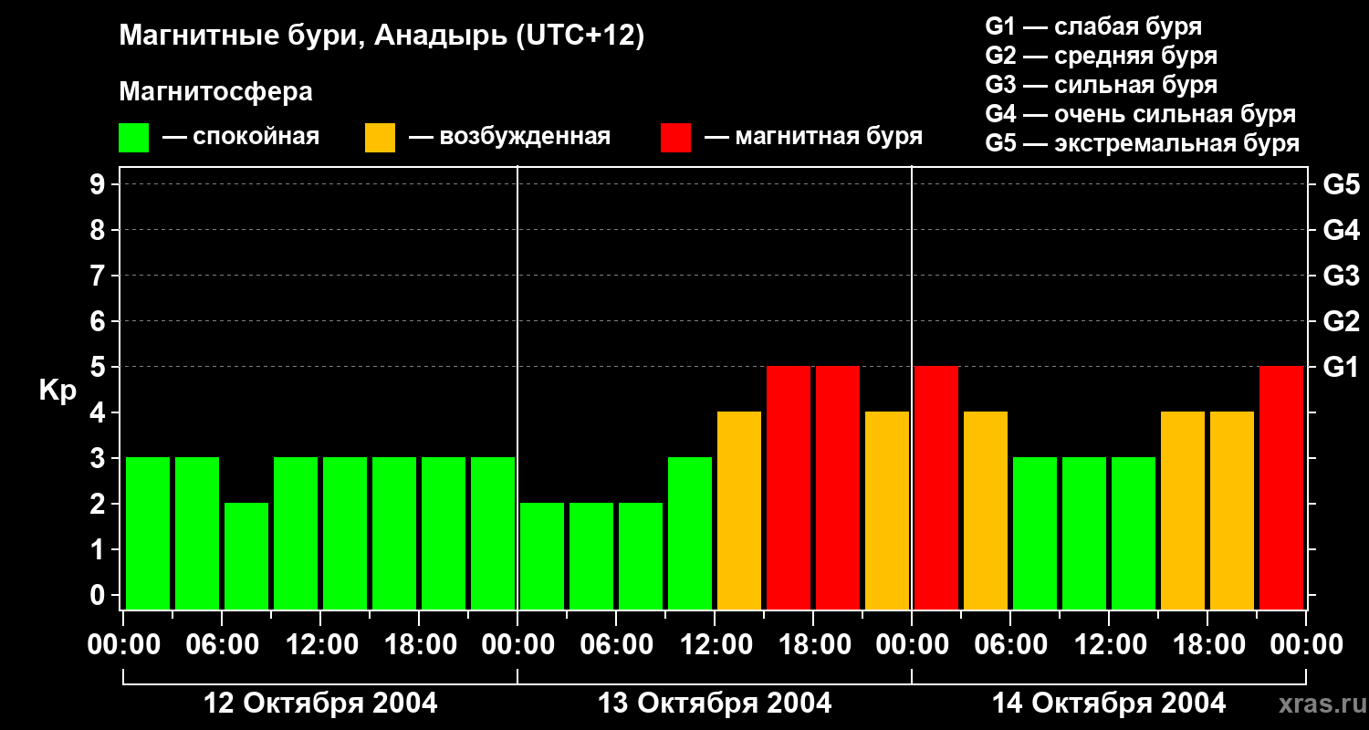 Магнитные бури в Анадыре — 14 октября 2004 года