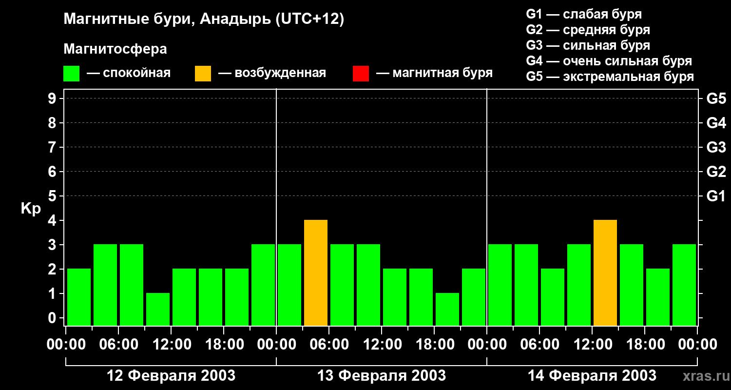 Магнитные бури в Анадыре — 14 февраля 2003 года