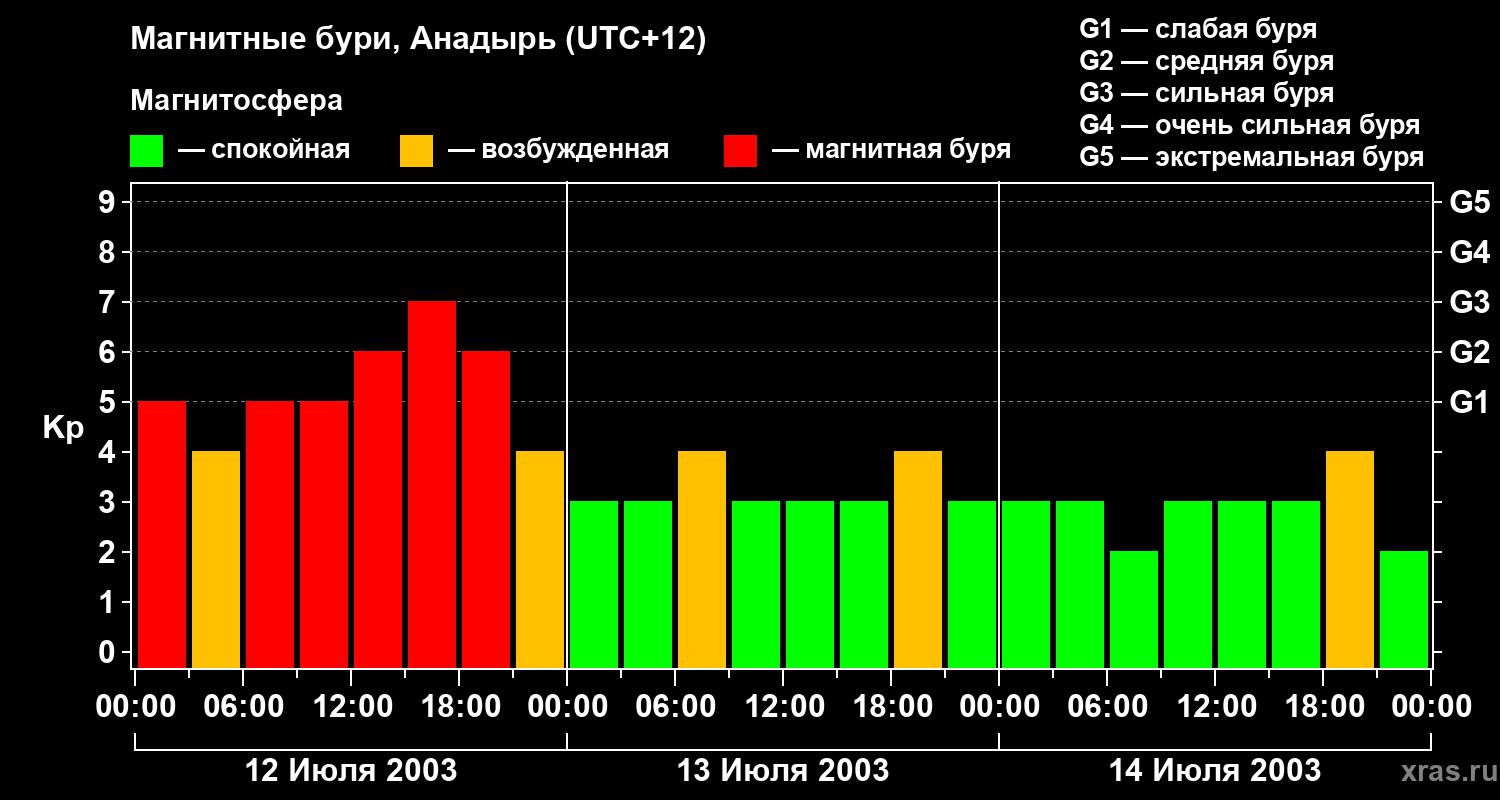 Магнитные бури в Анадыре — 14 июля 2003 года