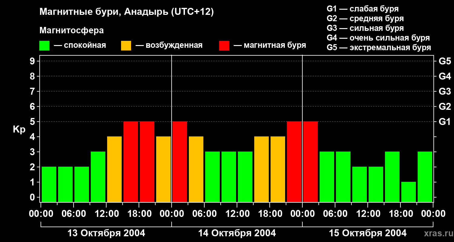 Магнитные бури в Анадыре — 15 октября 2004 года