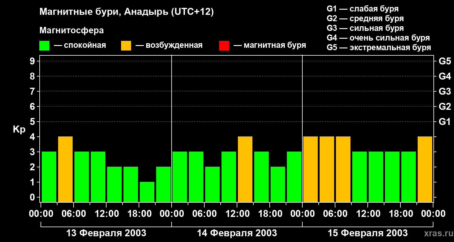 Магнитные бури в Анадыре — 15 февраля 2003 года