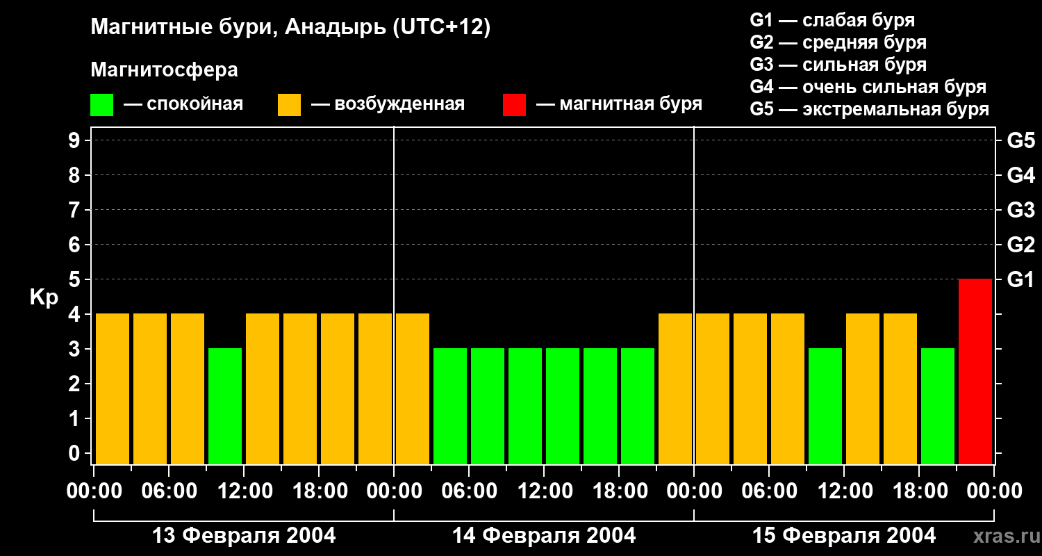 Магнитные бури в Анадыре — 15 февраля 2004 года