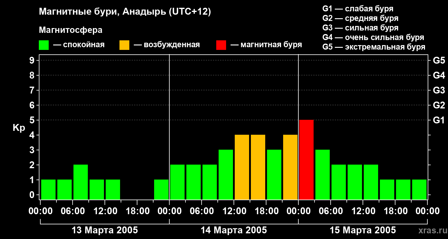 Магнитные бури в Анадыре — 15 марта 2005 года