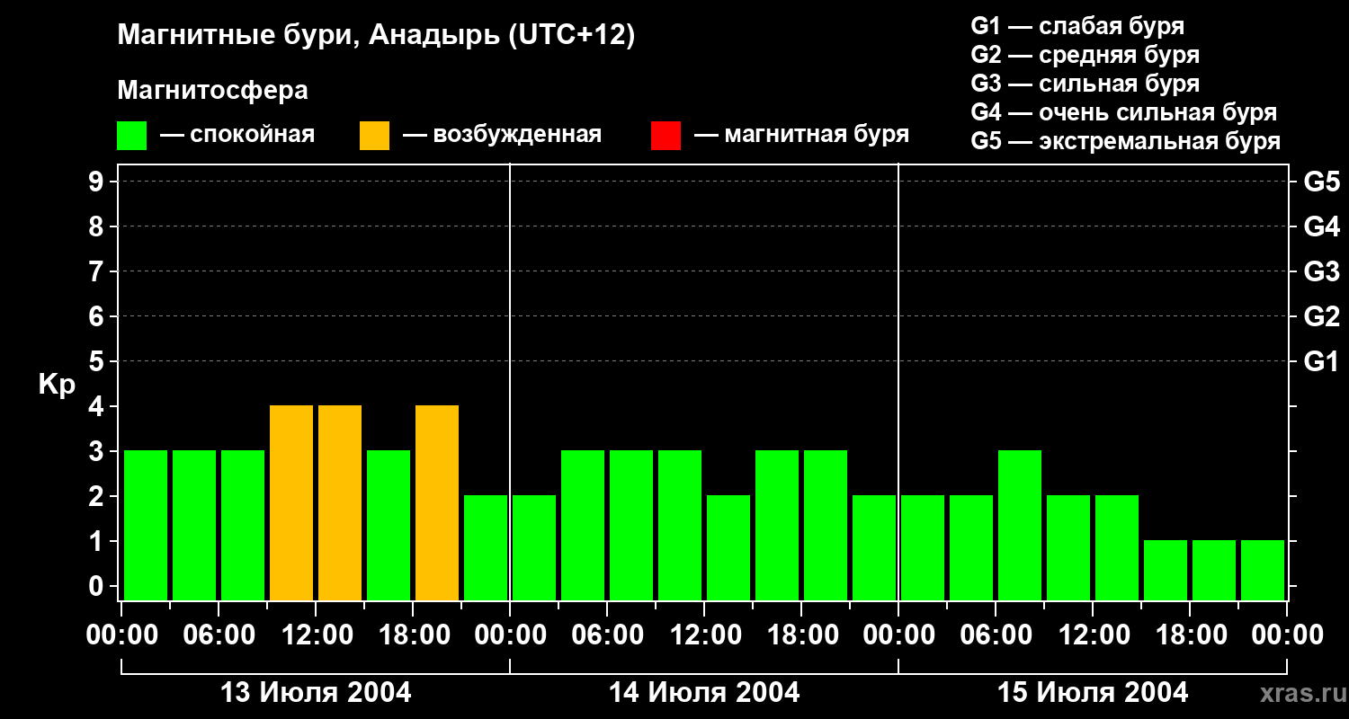 Магнитные бури в Анадыре — 15 июля 2004 года