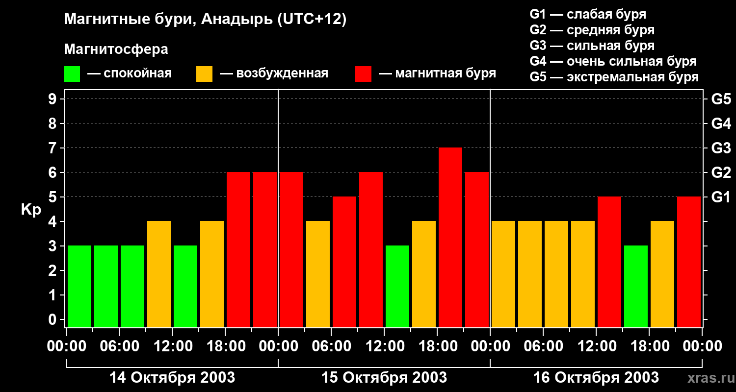 Магнитные бури в Анадыре — 16 октября 2003 года