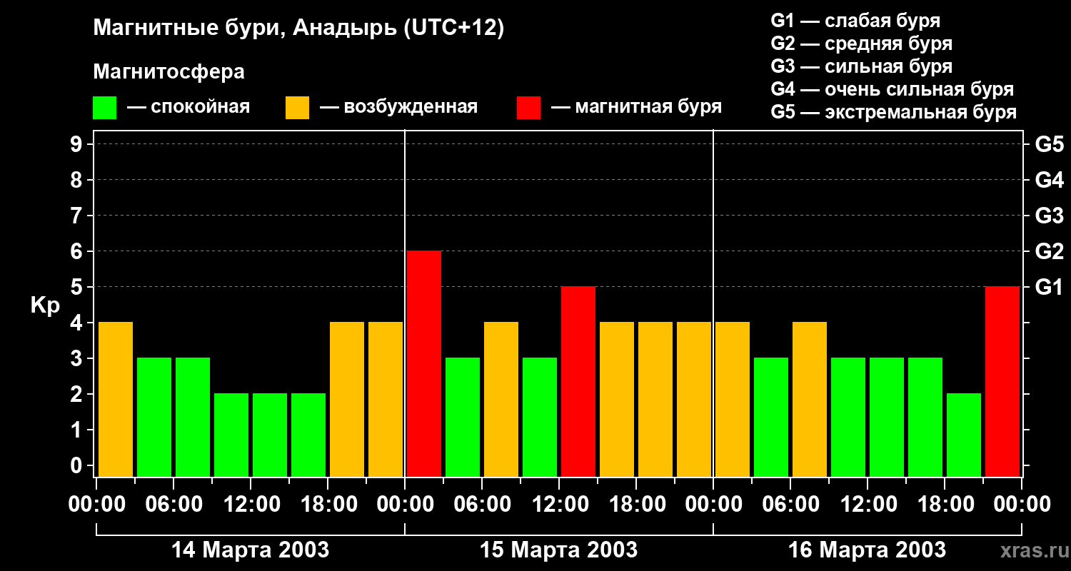Магнитные бури в Анадыре — 16 марта 2003 года