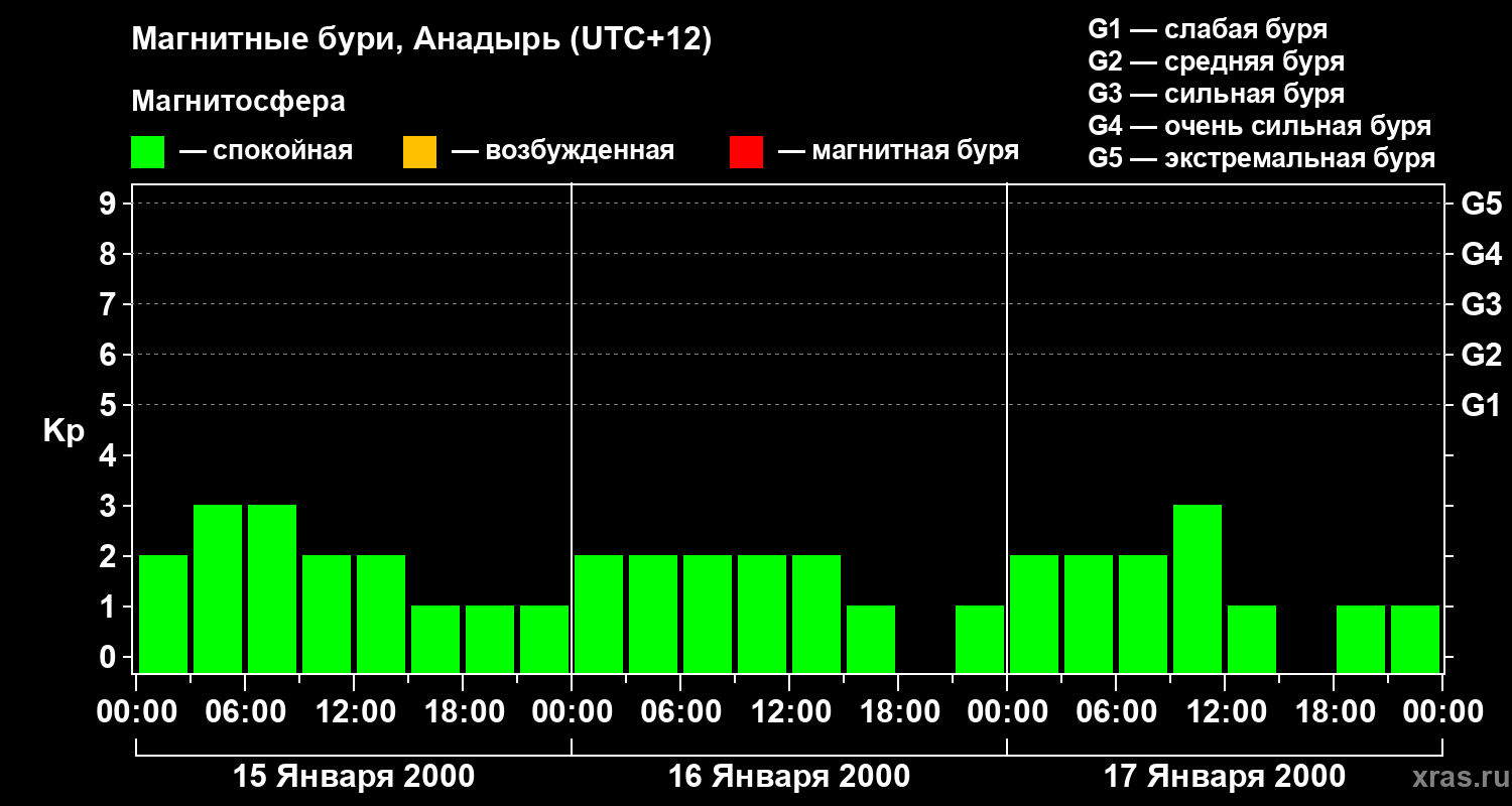 магнитосфера Земли была спокойной (Kp = 3.00)