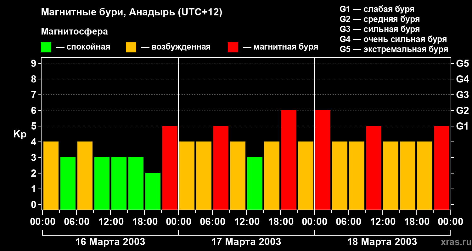 Магнитные бури в Анадыре — 18 марта 2003 года