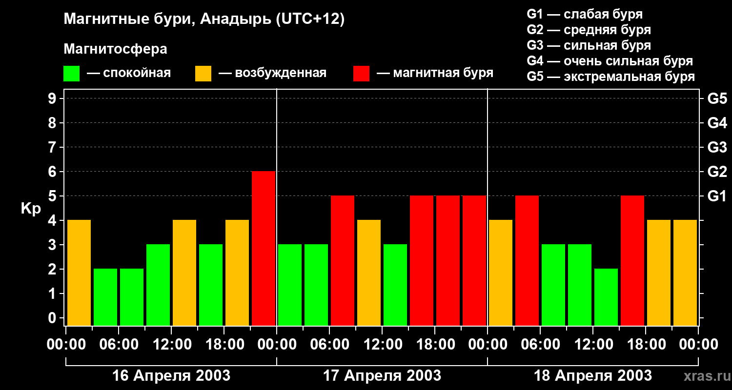 Магнитные бури в Анадыре в апреле 2003 года
