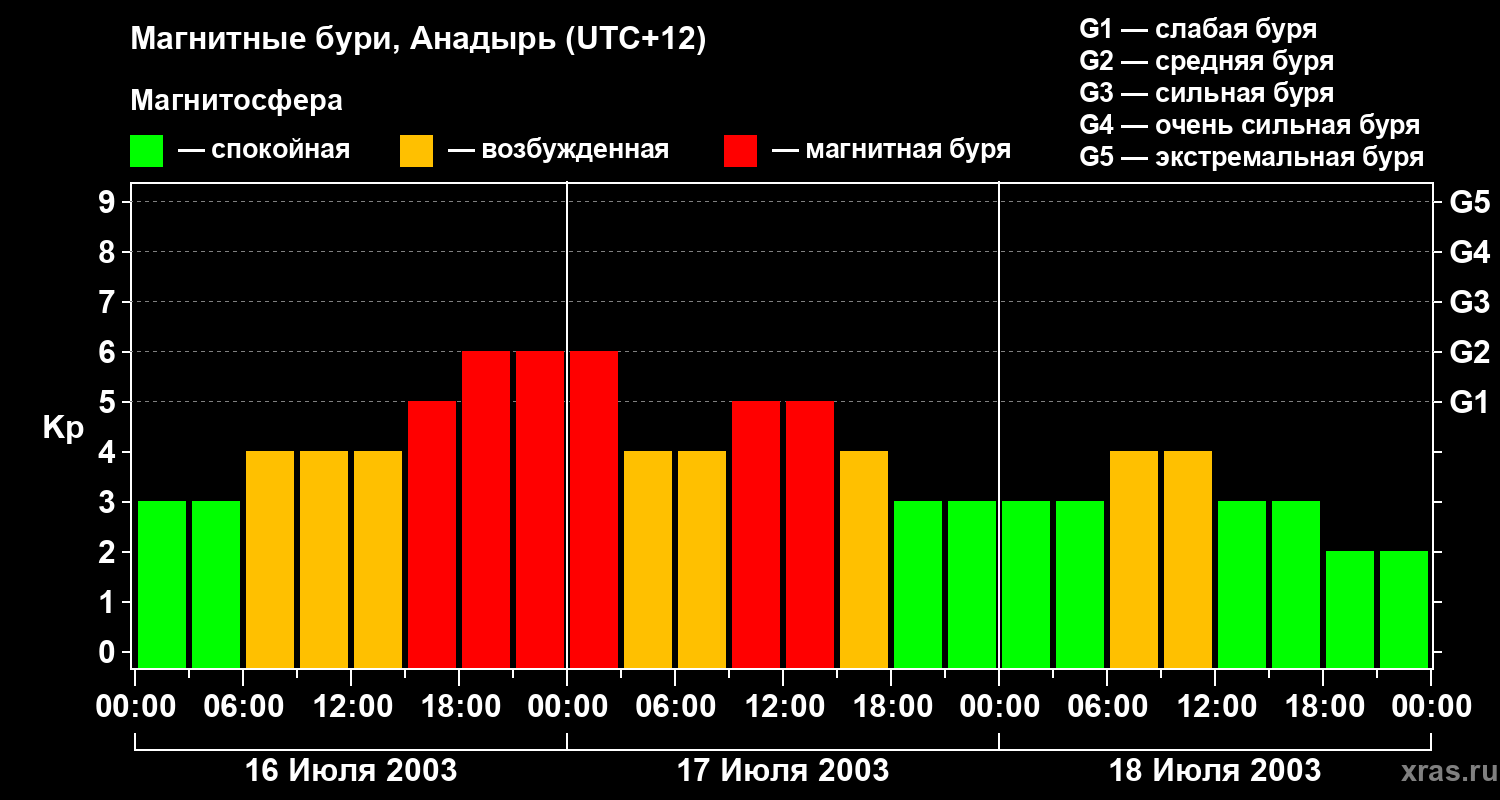 Магнитные бури в Анадыре — 18 июля 2003 года
