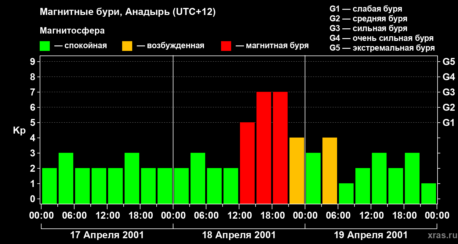 Магнитные бури в Анадыре — 19 апреля 2001 года