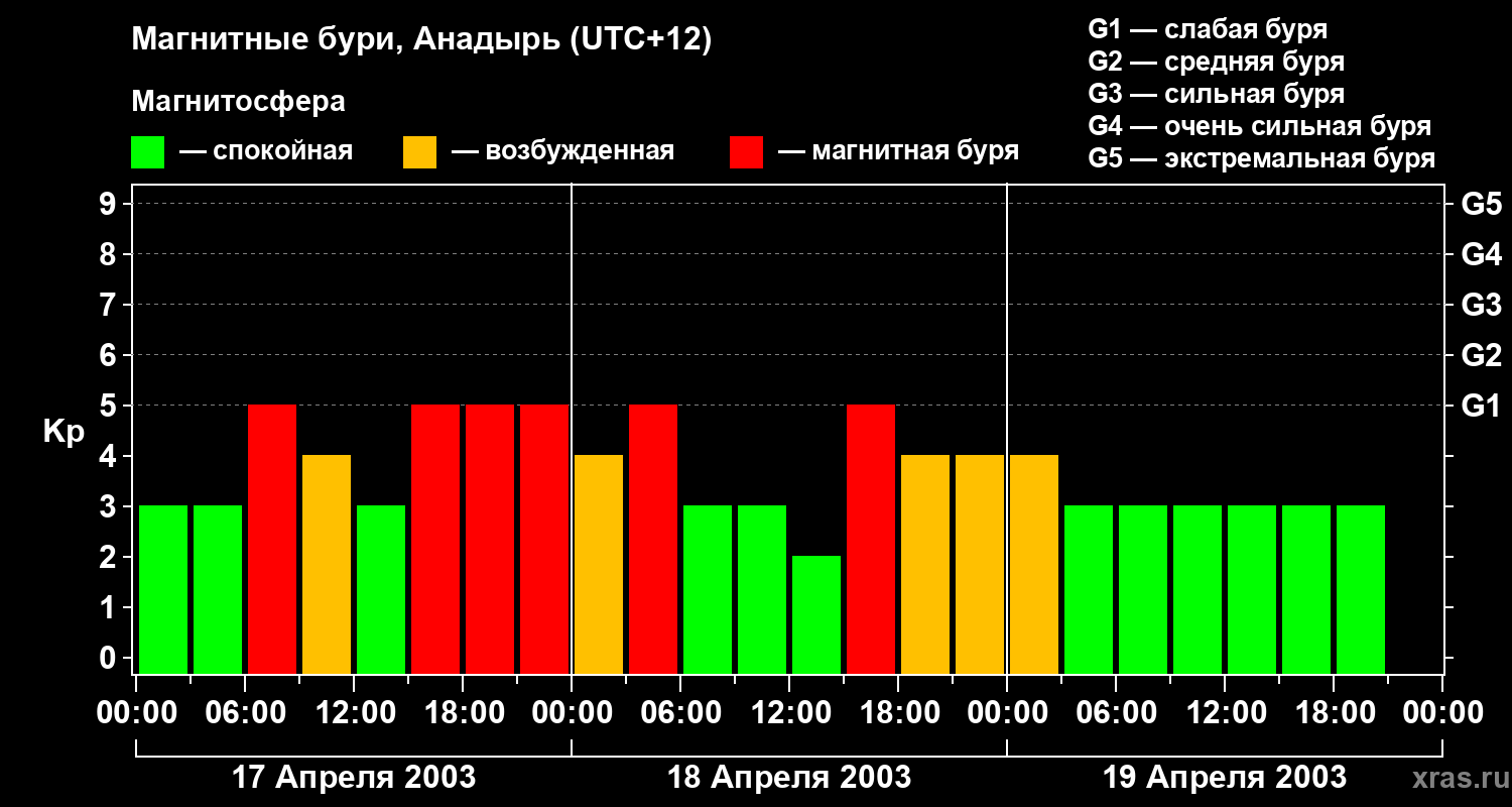 Магнитные бури в Анадыре — 19 апреля 2003 года