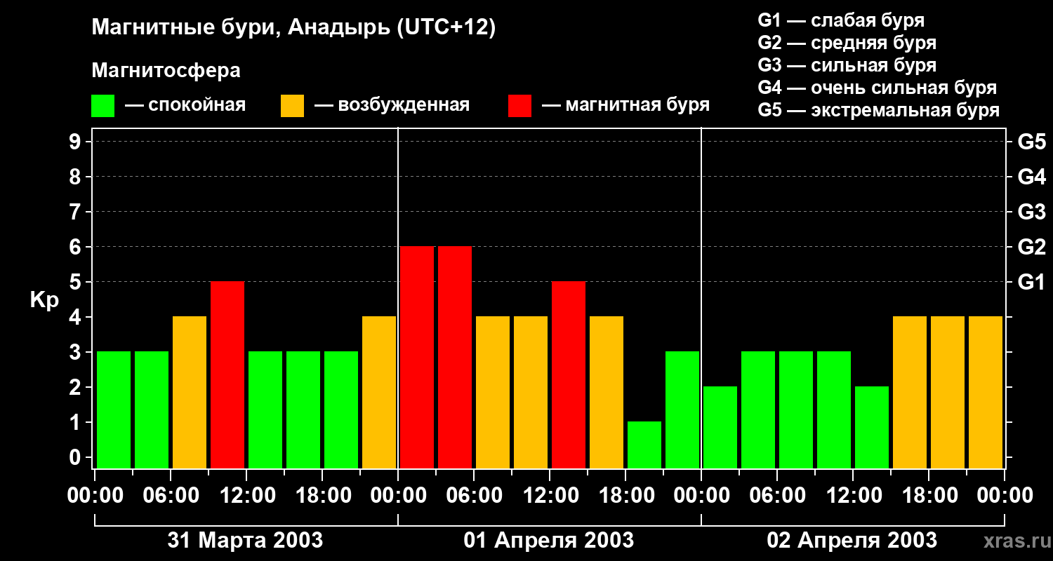 Магнитные бури в Анадыре — 2 апреля 2003 года