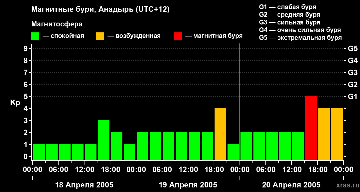 Магнитные бури в Анадыре — 20 апреля 2005 года