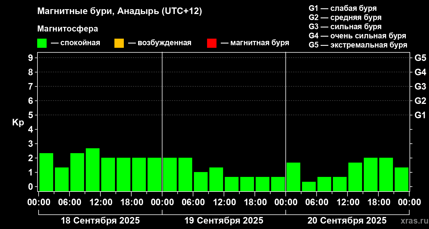 Магнитные бури в Анадыре 20 сентября 2025 года