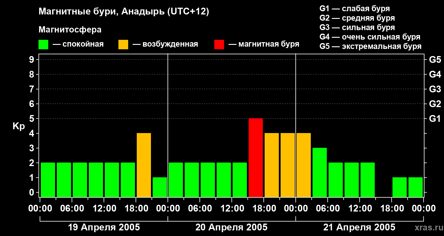 Магнитные бури в Анадыре — 21 апреля 2005 года