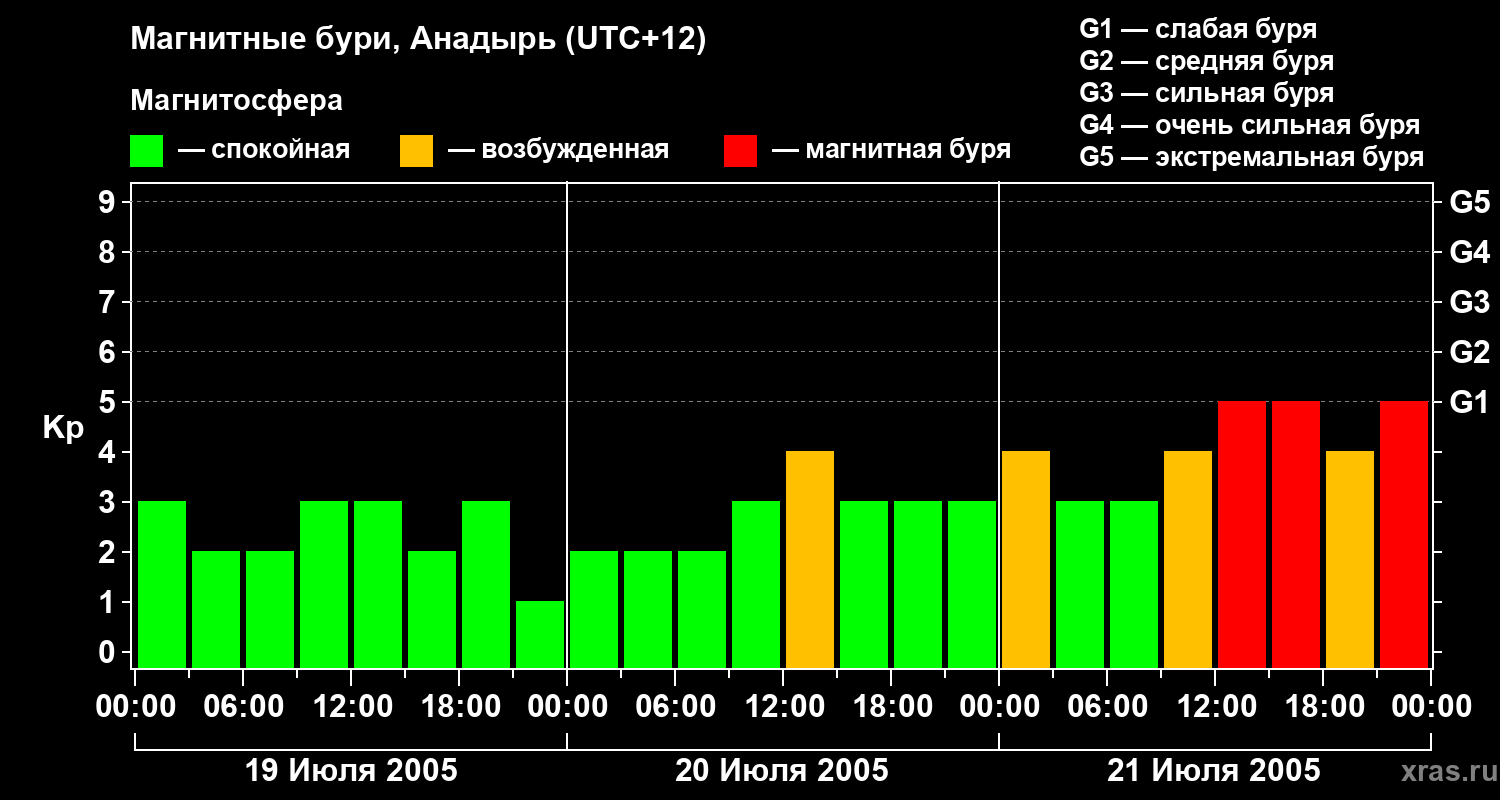 Магнитные бури в Анадыре — 21 июля 2005 года