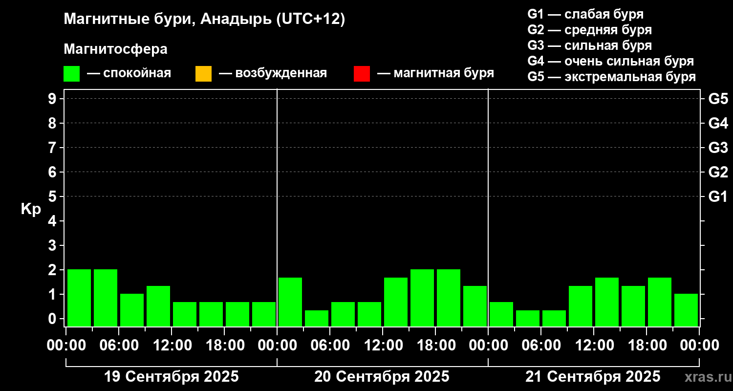 Магнитные бури в Анадыре 21 сентября 2025 года