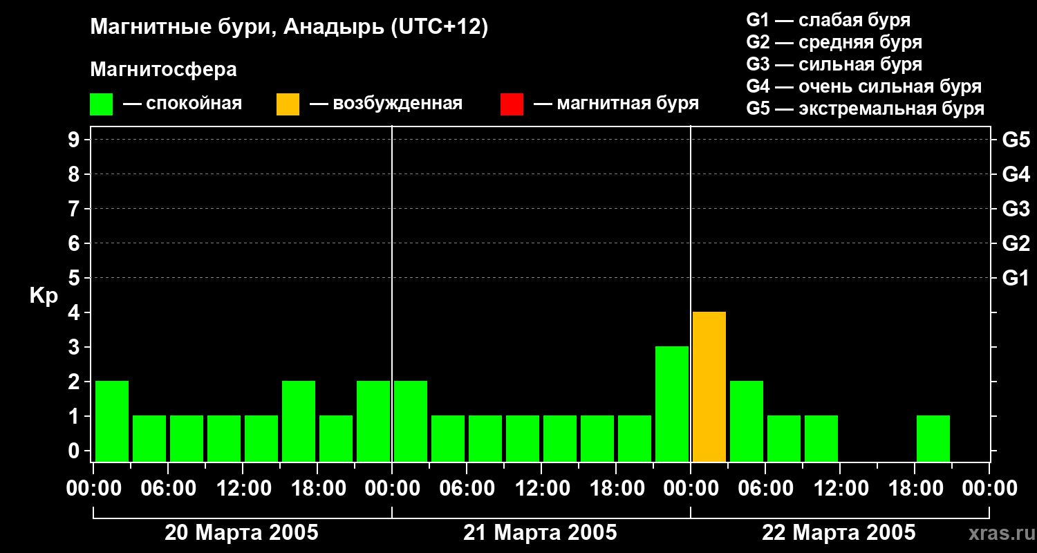 Магнитные бури в Анадыре — 22 марта 2005 года