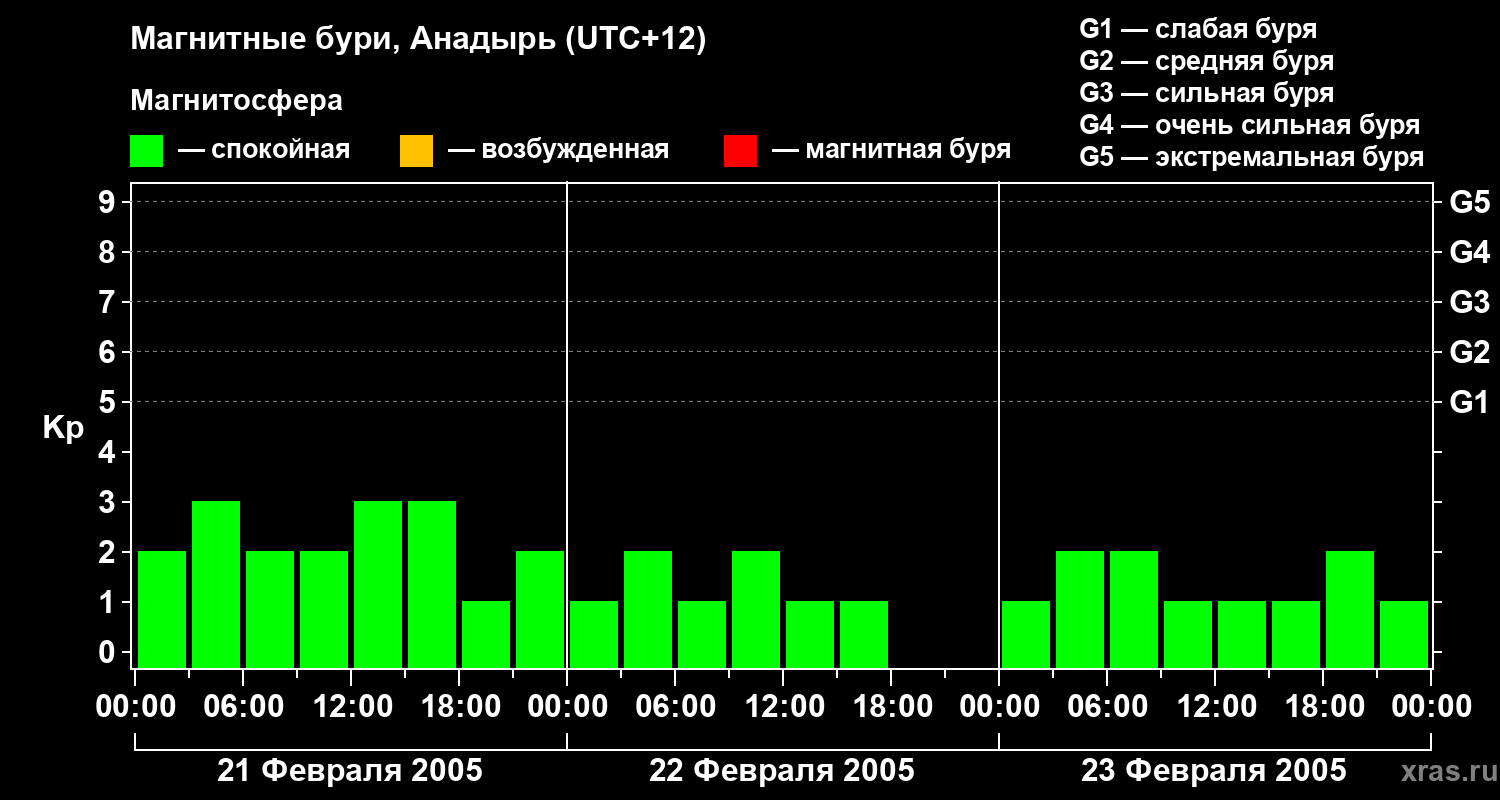 Магнитные бури в Анадыре — 23 февраля 2005 года