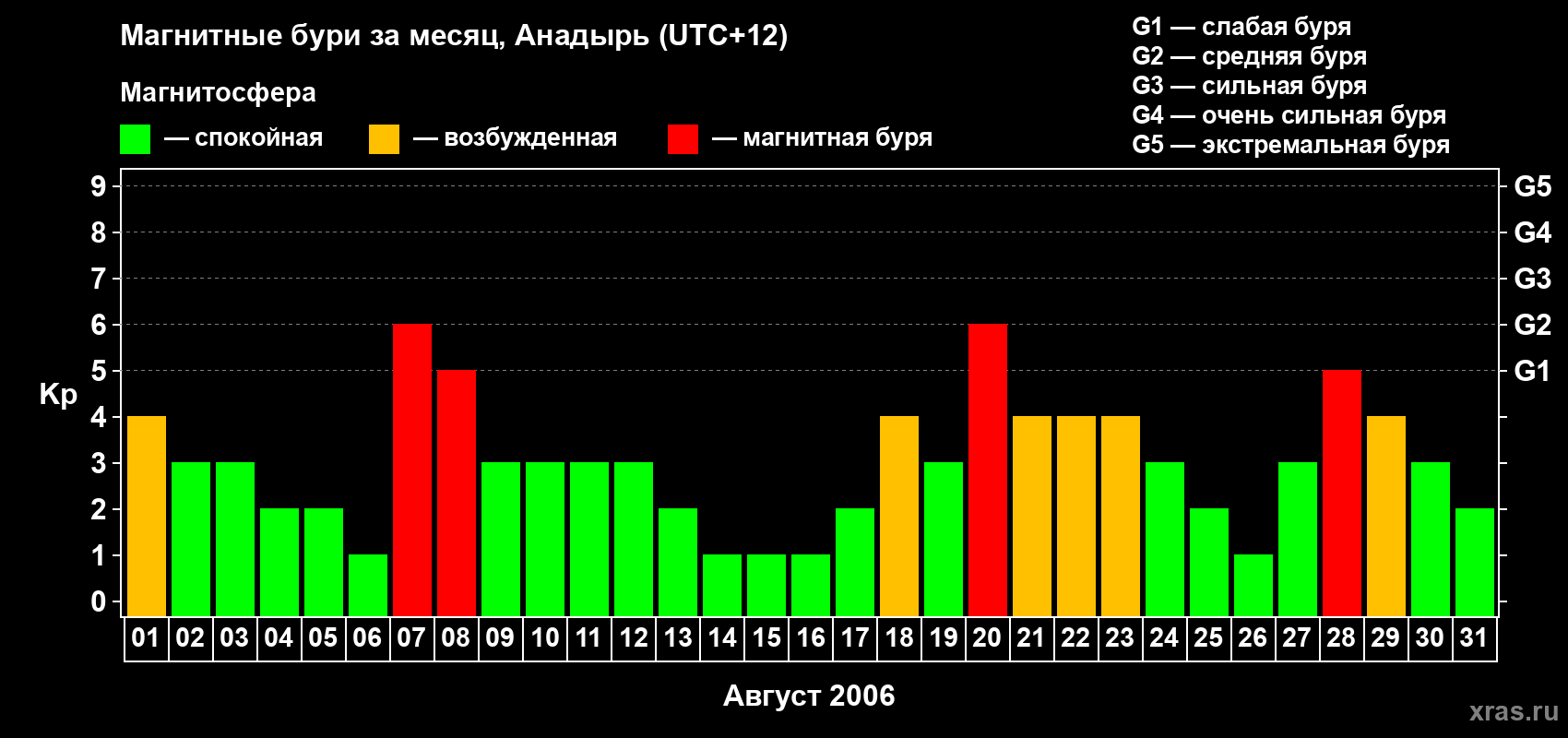 Магнитные бури в Анадыре в августе 2006 года