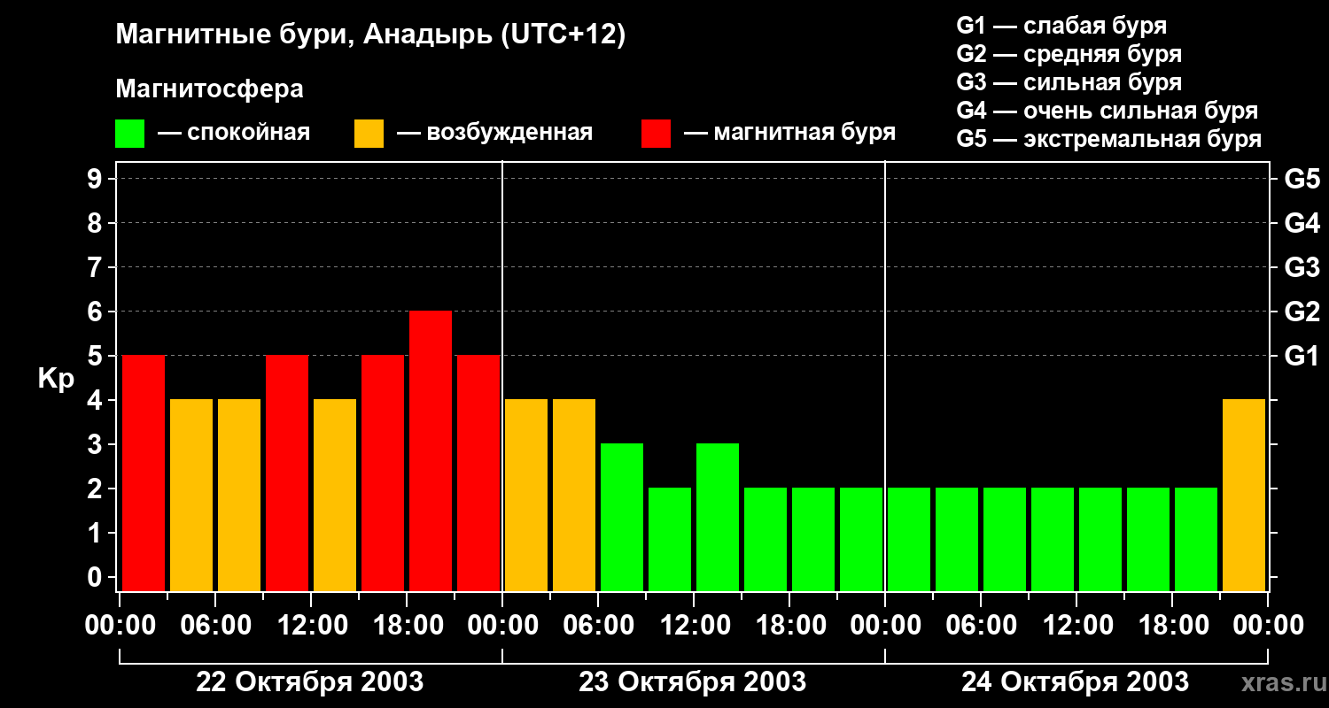 Магнитные бури в Анадыре — 24 октября 2003 года