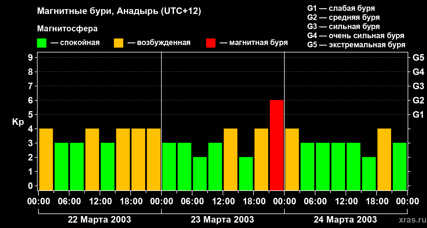 Магнитные бури в Анадыре — 24 марта 2003 года