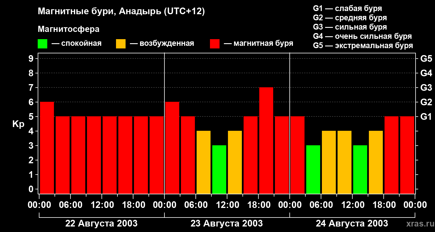 Магнитные бури в Анадыре — 24 августа 2003 года