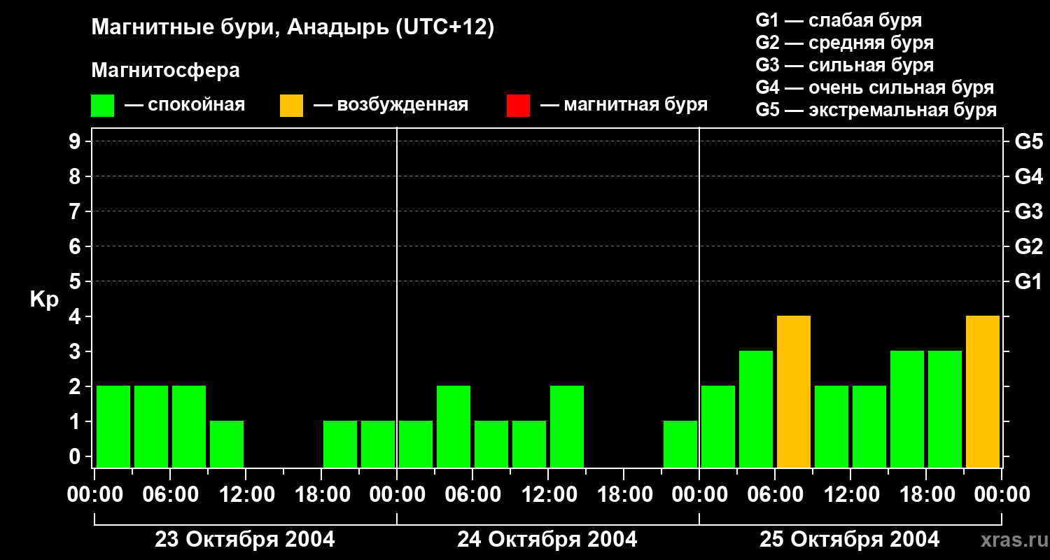 Магнитные бури в Анадыре — 25 октября 2004 года