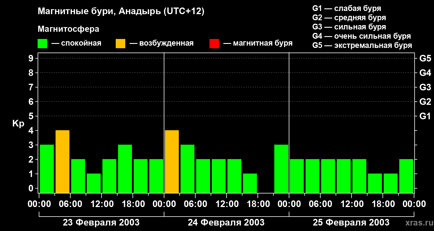 Магнитные бури в Анадыре — 25 февраля 2003 года