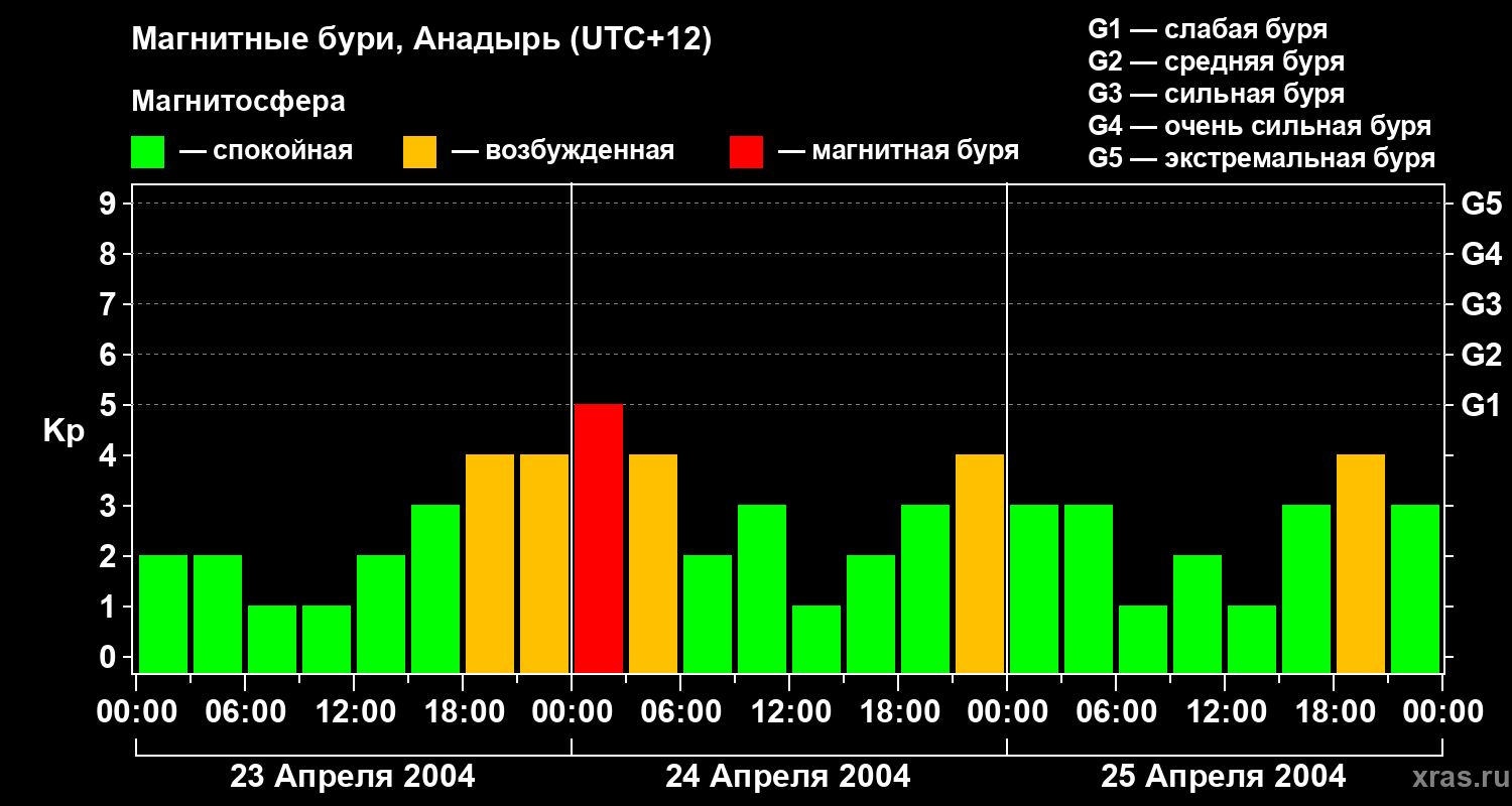 Магнитные бури в Анадыре — 25 апреля 2004 года