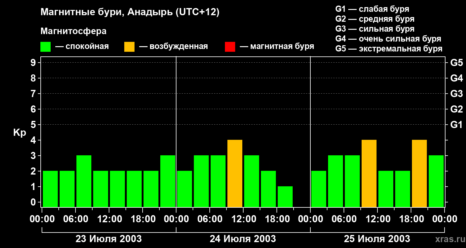 Магнитные бури в Анадыре — 25 июля 2003 года