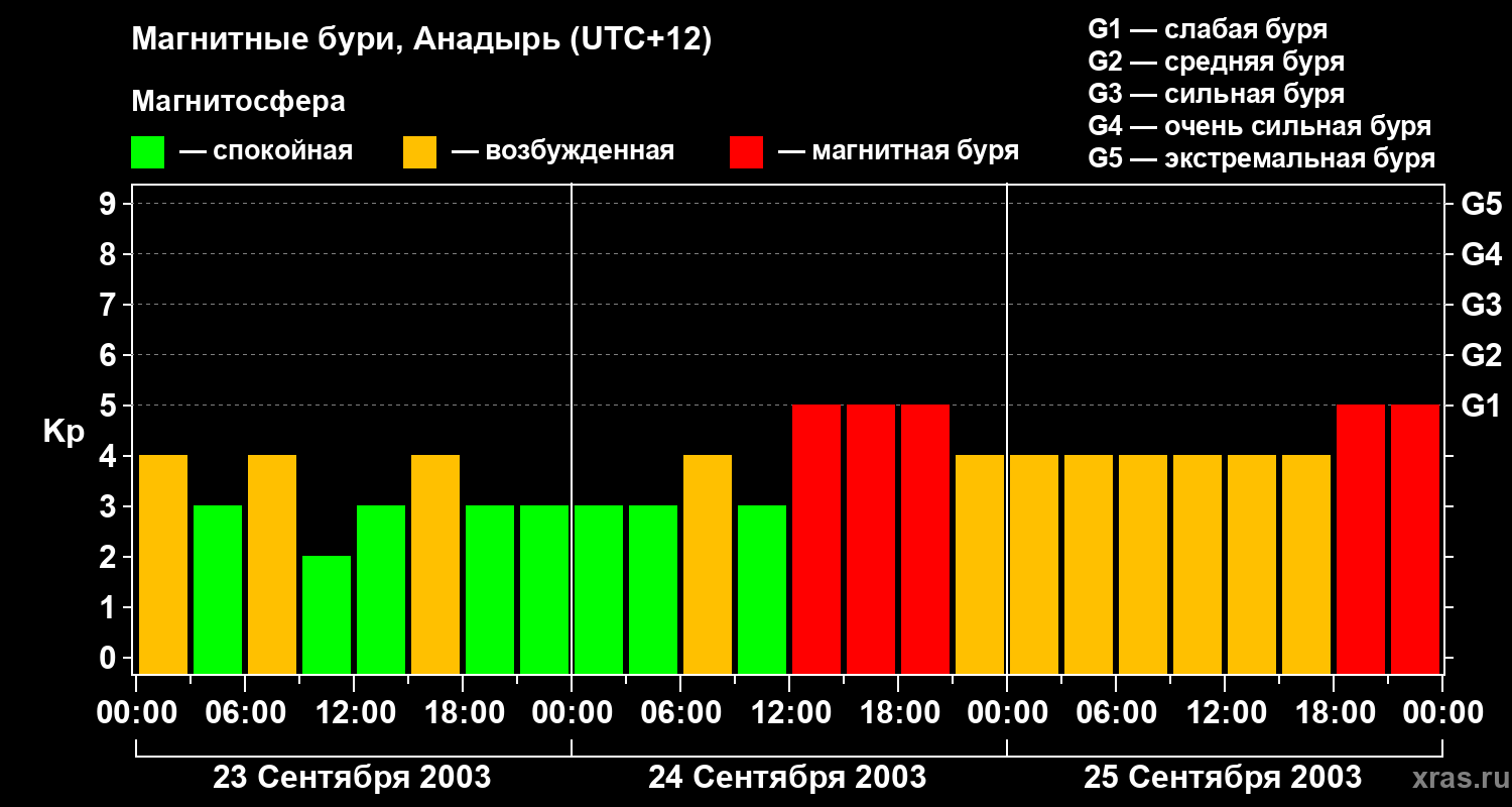 Магнитные бури в Анадыре — 25 сентября 2003 года