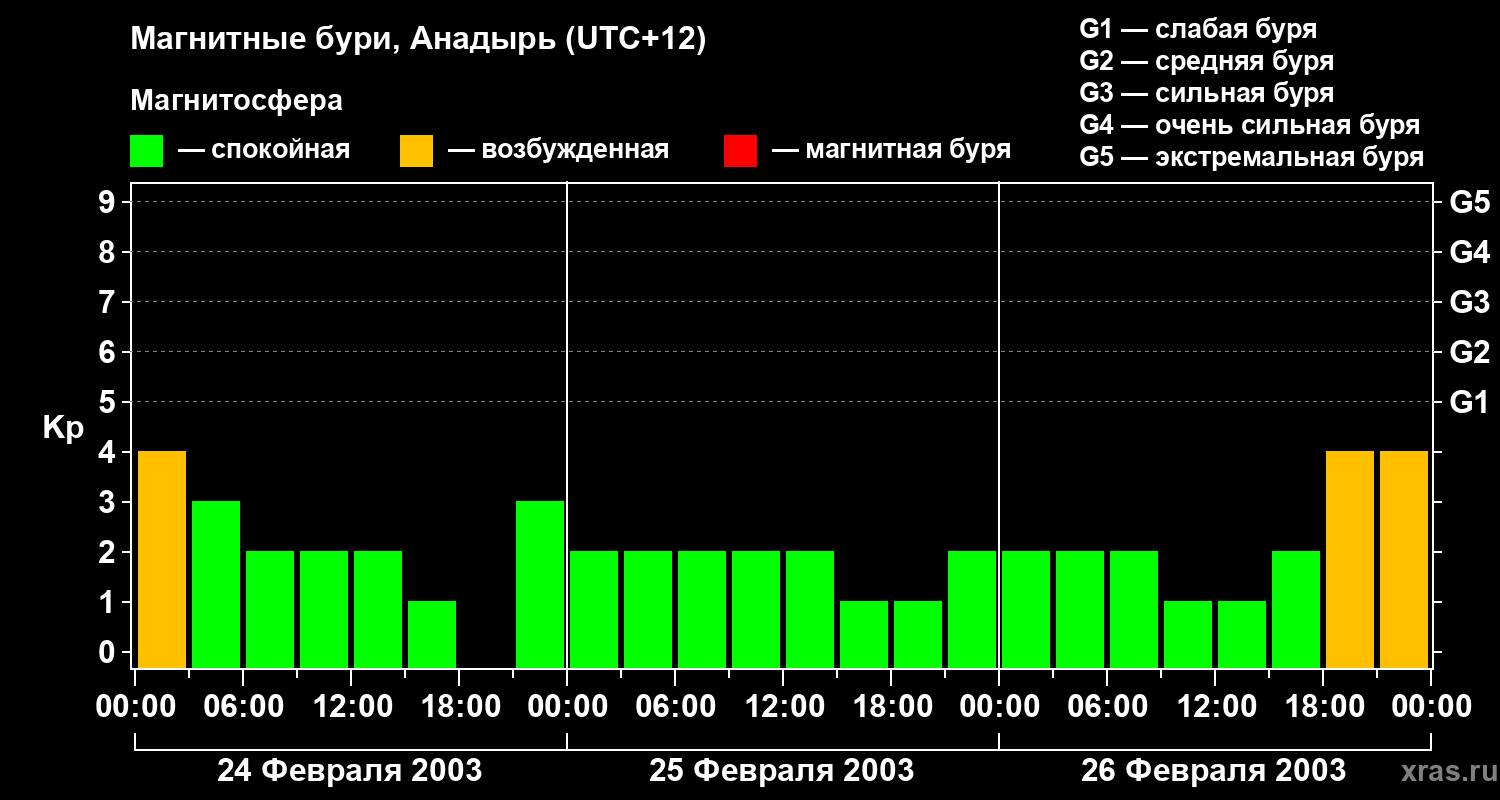 Магнитные бури в Анадыре — 26 февраля 2003 года