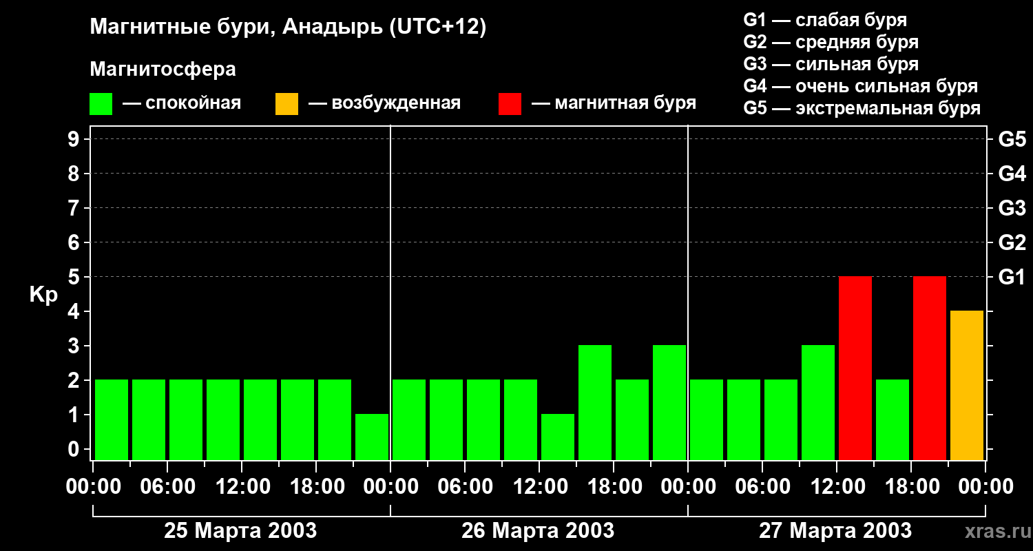 Магнитные бури в Анадыре — 27 марта 2003 года