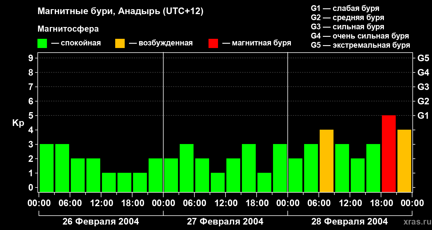 Магнитные бури в Анадыре — 28 февраля 2004 года