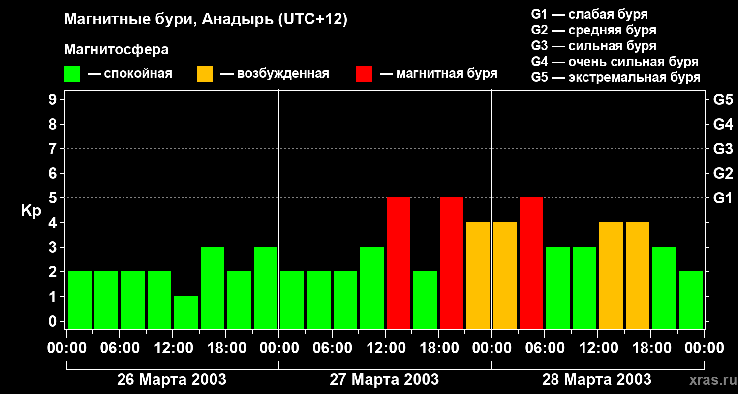 Магнитные бури в Анадыре — 28 марта 2003 года