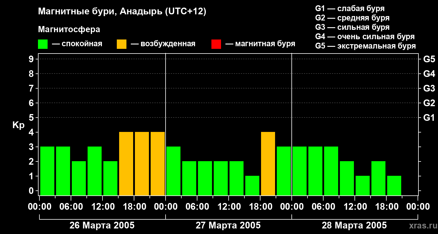 Магнитные бури в Анадыре — 28 марта 2005 года