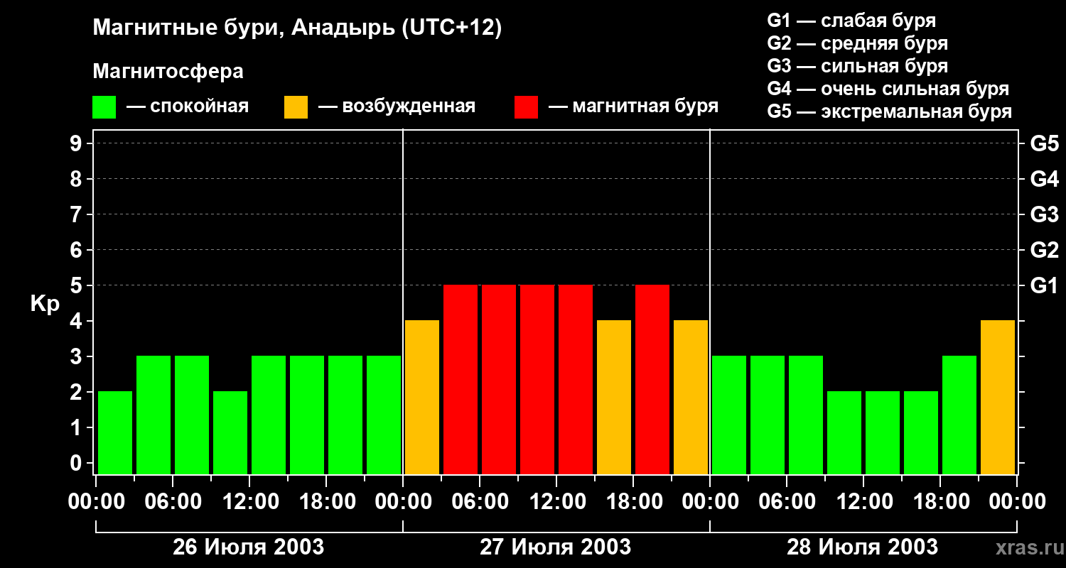 Магнитные бури в Анадыре — 28 июля 2003 года