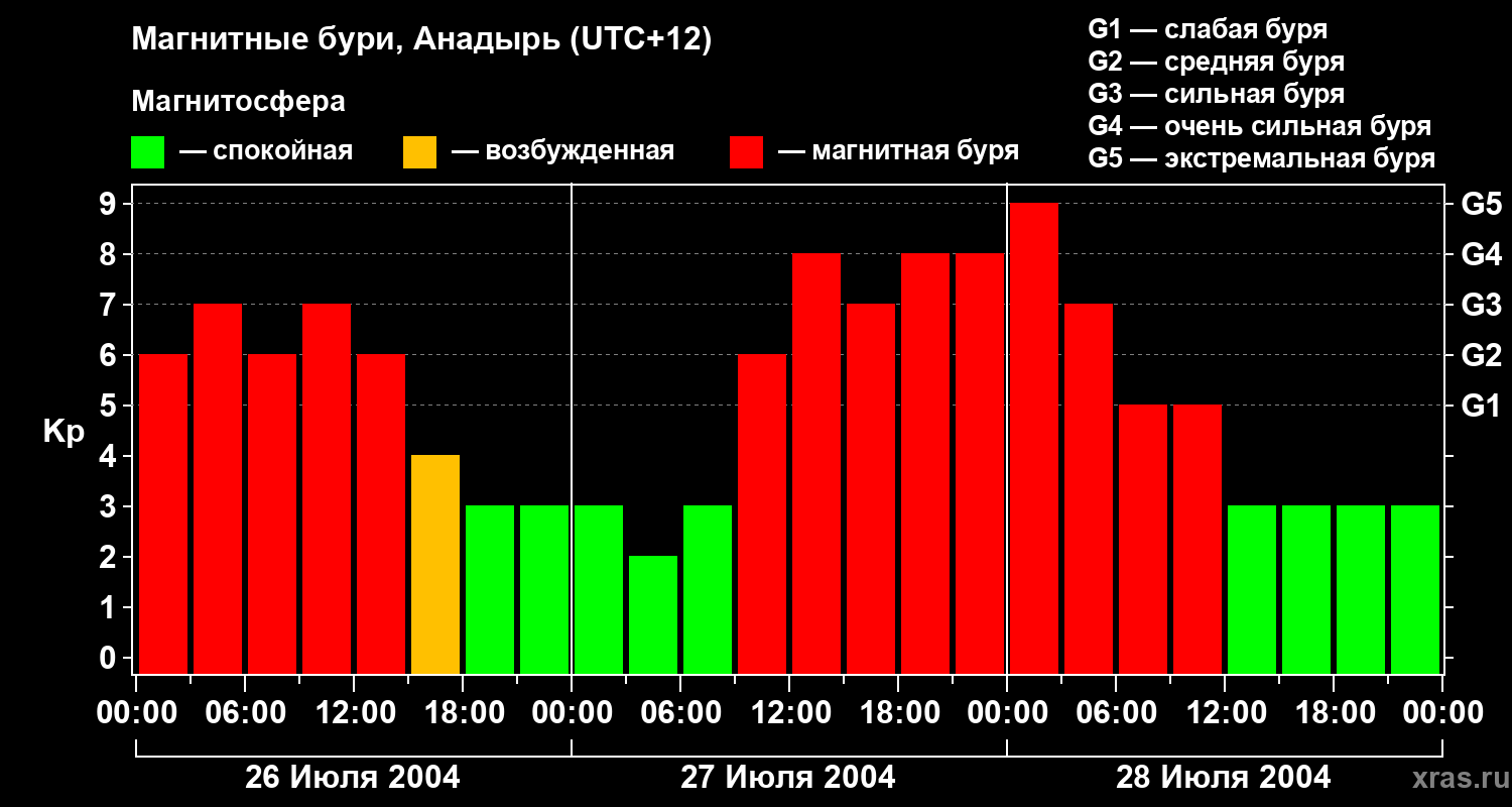 Магнитные бури в Анадыре — 28 июля 2004 года