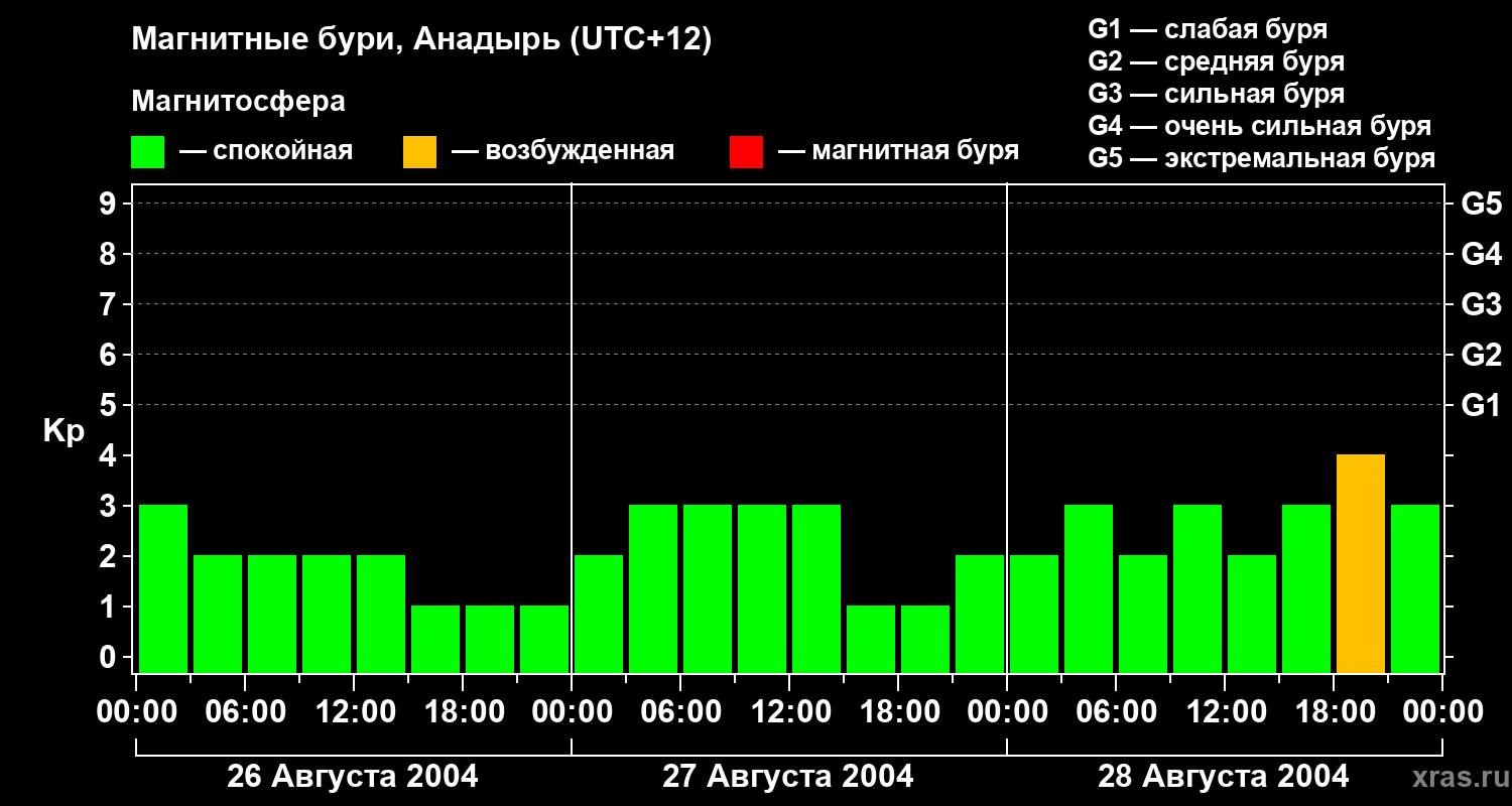 Магнитные бури в Анадыре — 28 августа 2004 года