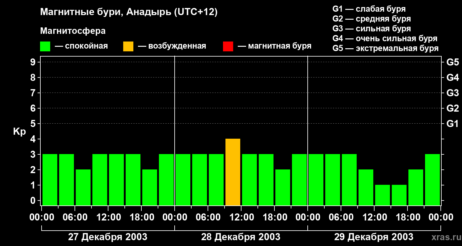 Магнитные бури в Анадыре — 29 декабря 2003 года
