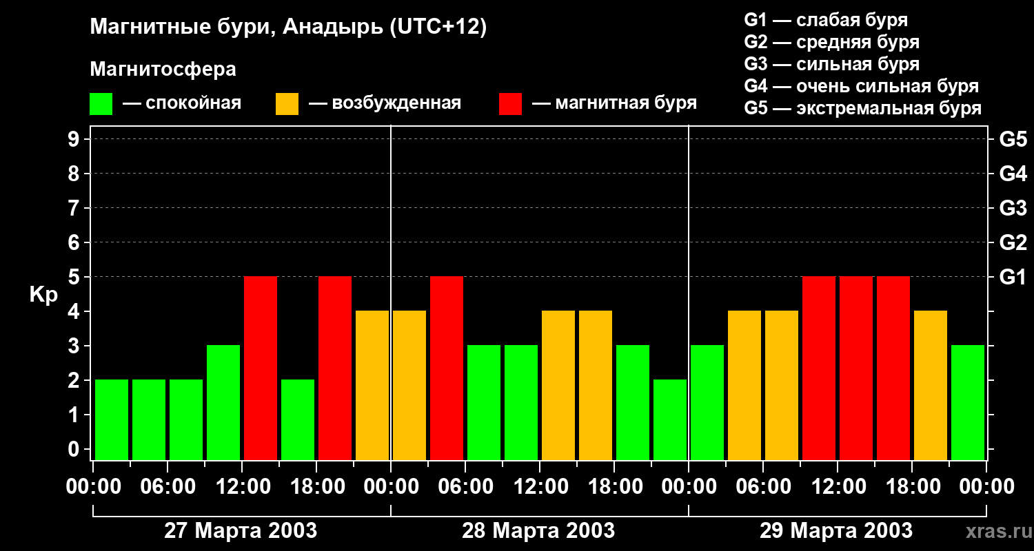 Магнитные бури в Анадыре — 29 марта 2003 года