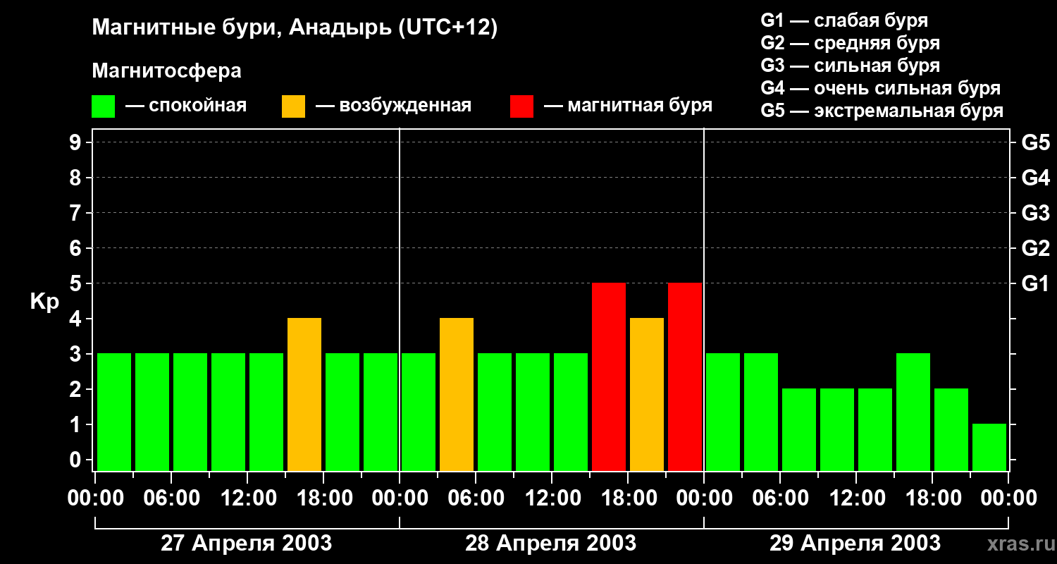 Магнитные бури в Анадыре — 29 апреля 2003 года